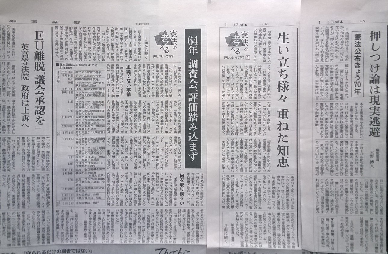 前の画像 次の画像 %e6%86%b2%e6%b3%95%e3%80%80%e6%8a%bc%e3%81%97%e3%81%a4%e3%81%91%e3%81%a3%e3%81%a6%e4%bd%95%ef%bc%91 朝日新聞2016年11月3日・4日