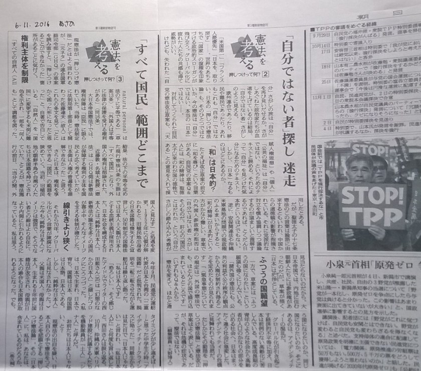 前の画像 %e6%86%b2%e6%b3%95%e3%80%80%e6%8a%bc%e3%81%97%e3%81%a4%e3%81%91%e3%81%a3%e3%81%a6%e4%bd%95%ef%bc%92%e3%81%a8%ef%bc%93 朝日新聞2016年11月5日・6日