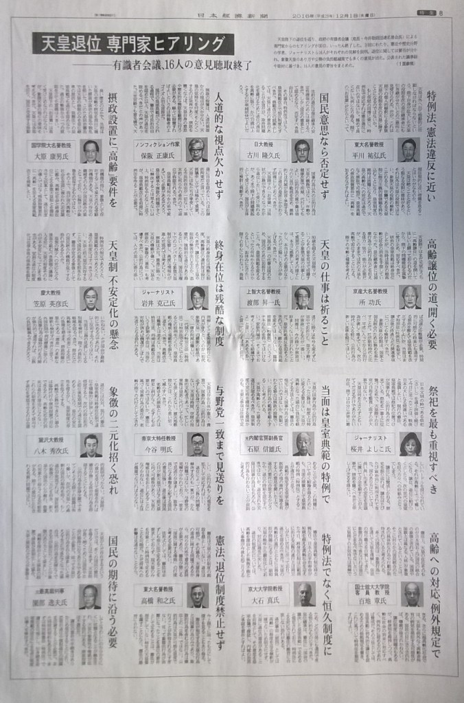 前の画像 %e5%a4%a9%e7%9a%87%e3%80%80%e6%9c%89%e8%ad%98%e8%80%85%e4%bc%9a%e8%ad%b0%e3%83%92%e3%82%a2%e3%83%aa%e3%83%b3%e3%82%b0%e3%80%80%e6%97%a5%e7%b5%8c 日本経済新聞2016年12月1日