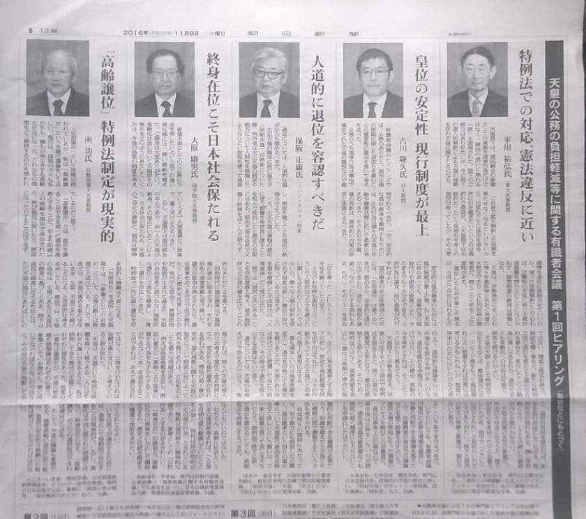 前の画像 次の画像 %e5%a4%a9%e7%9a%87%e3%80%80%e6%9c%89%e8%ad%98%e8%80%85%e4%bc%9a%e8%ad%b0%e3%83%92%e3%82%a2%e3%83%aa%e3%83%b3%e3%82%b0%ef%bc%91 朝日新聞2016年11月8日